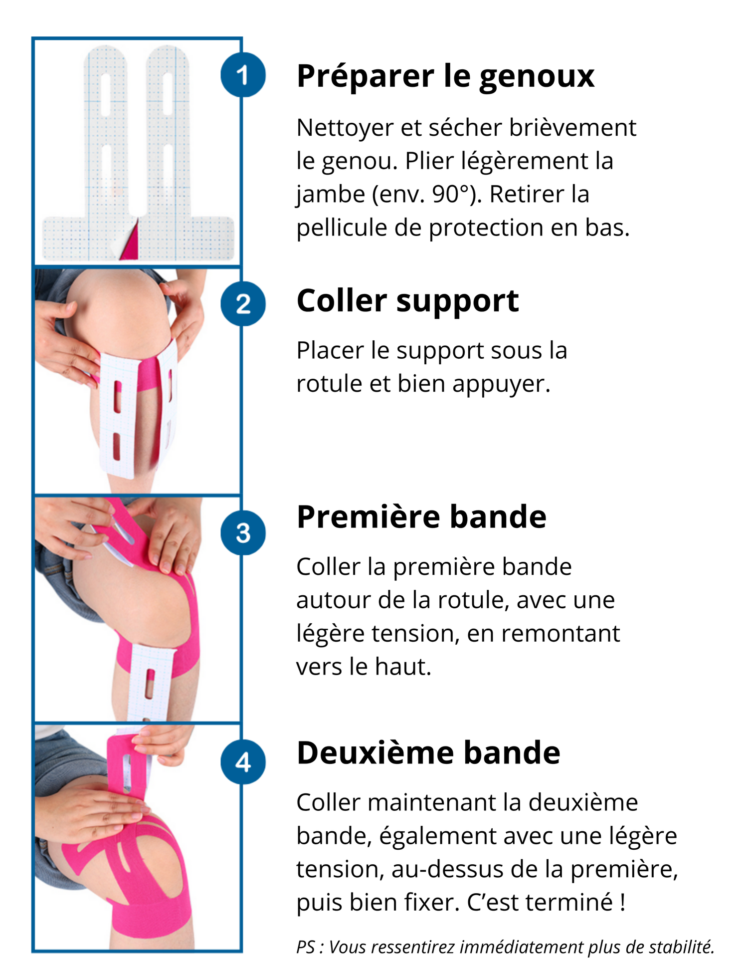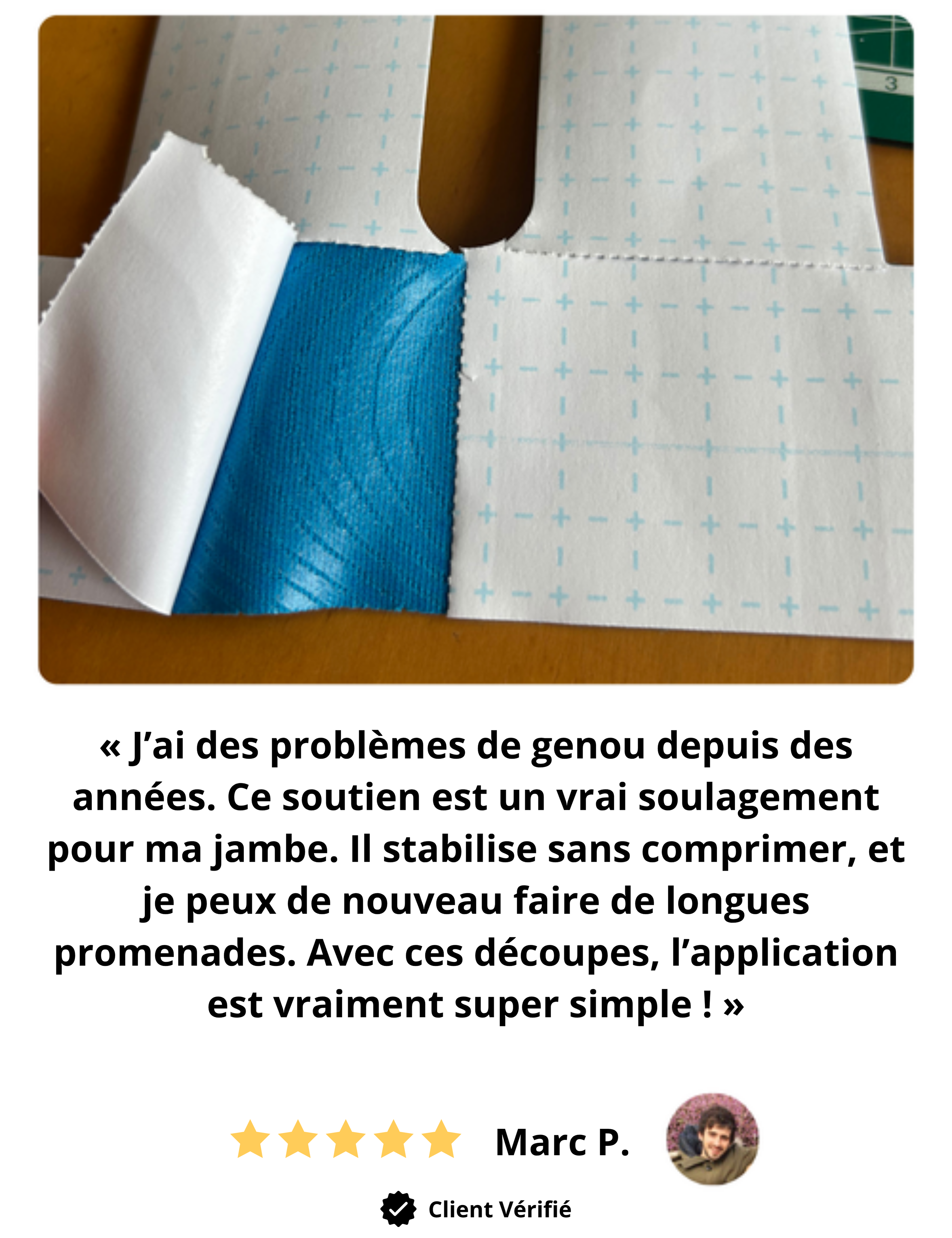 Non ! C’est exactement pour ça que Kinesox™ a été conçu. Nos supports sont déjà prédécoupés et préformés de façon anatomique pour s’adapter parfaitement au genou – sans aucune connaissance médicale préalable.